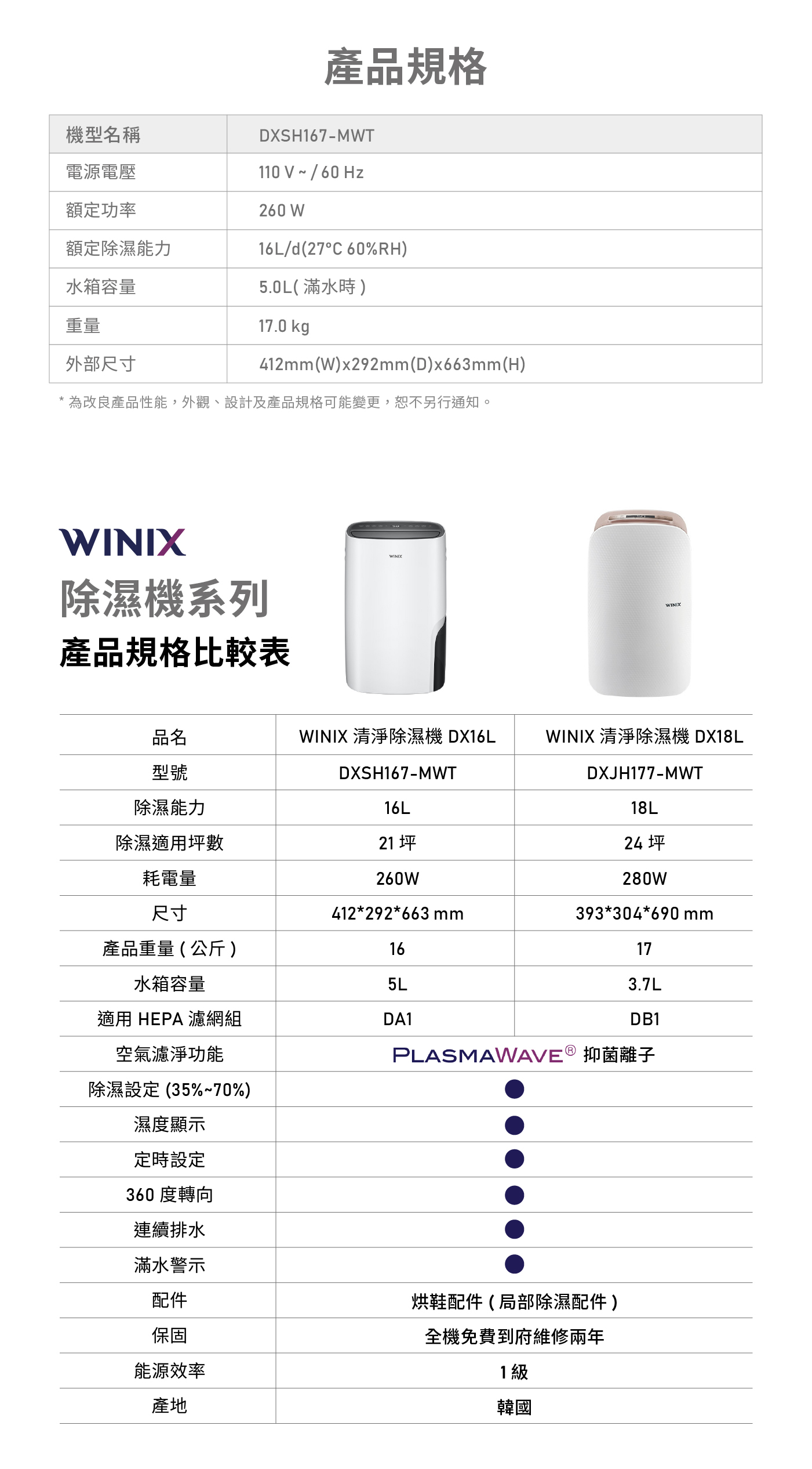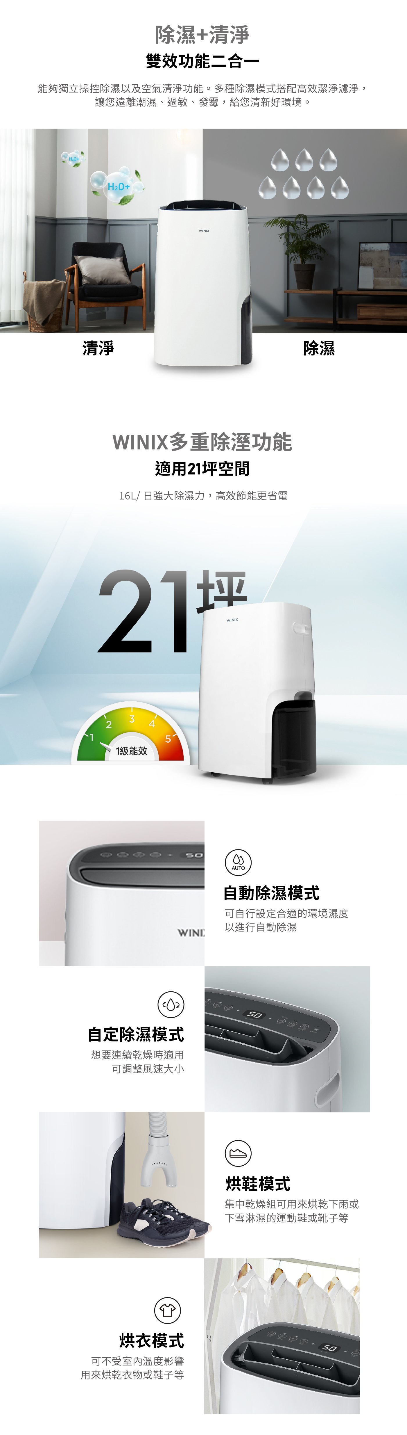 【入會折$100】WINIX 16公升一級能效智能清淨除濕機DX16L