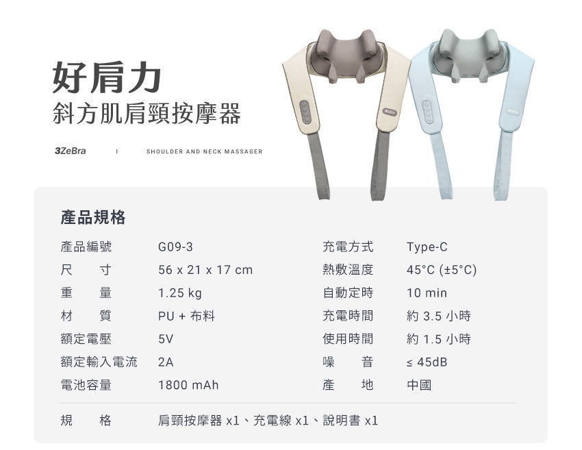 【3ZeBra】好肩力/斜方肌肩頸按摩器(米白色)