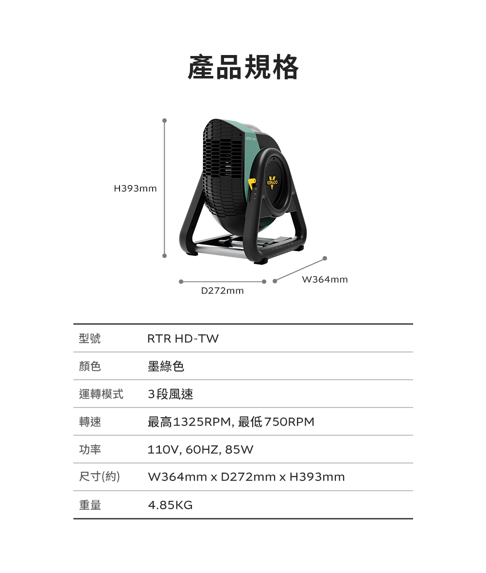 RPM(每分鐘轉速):最大段速 1325RPM、最小段速 750RPM