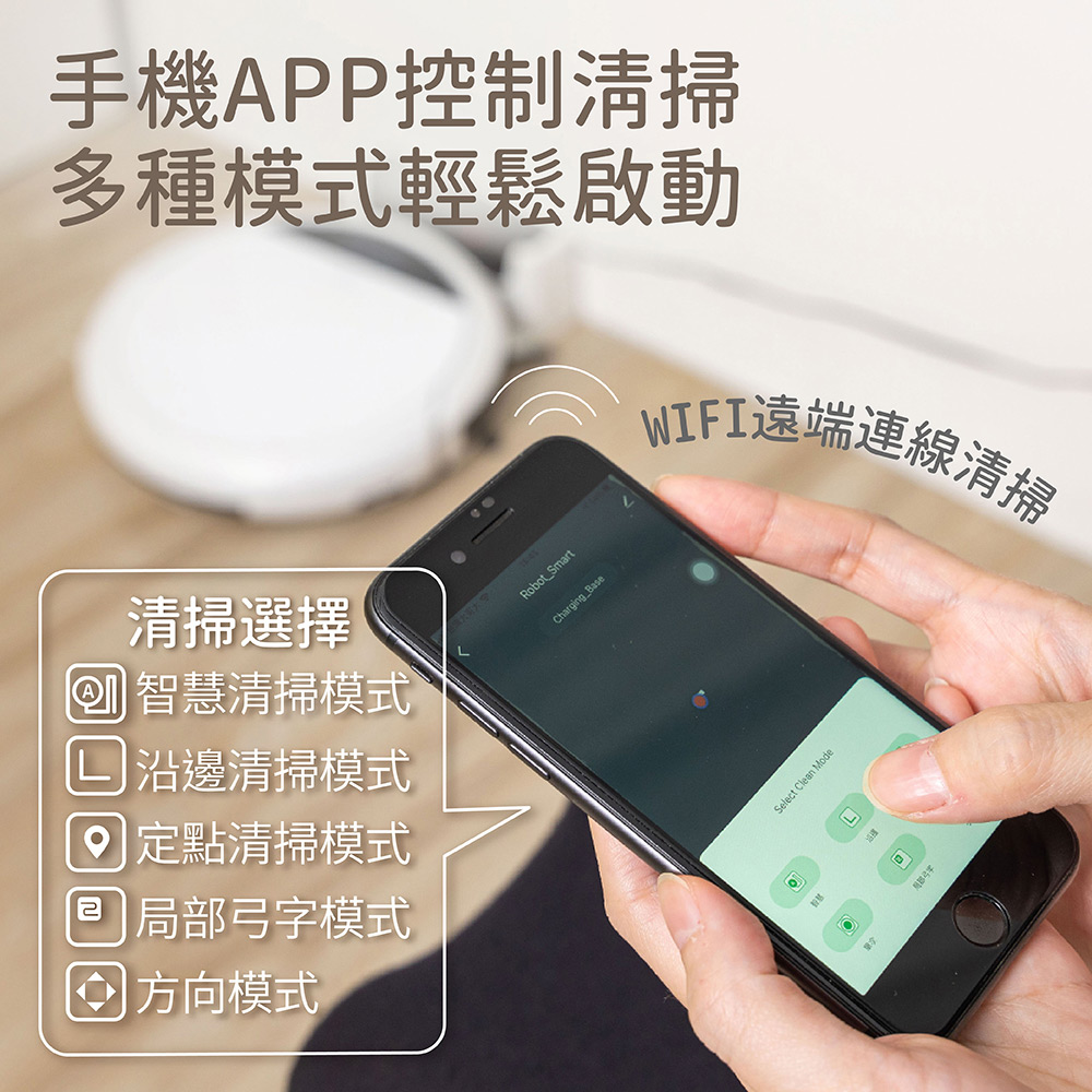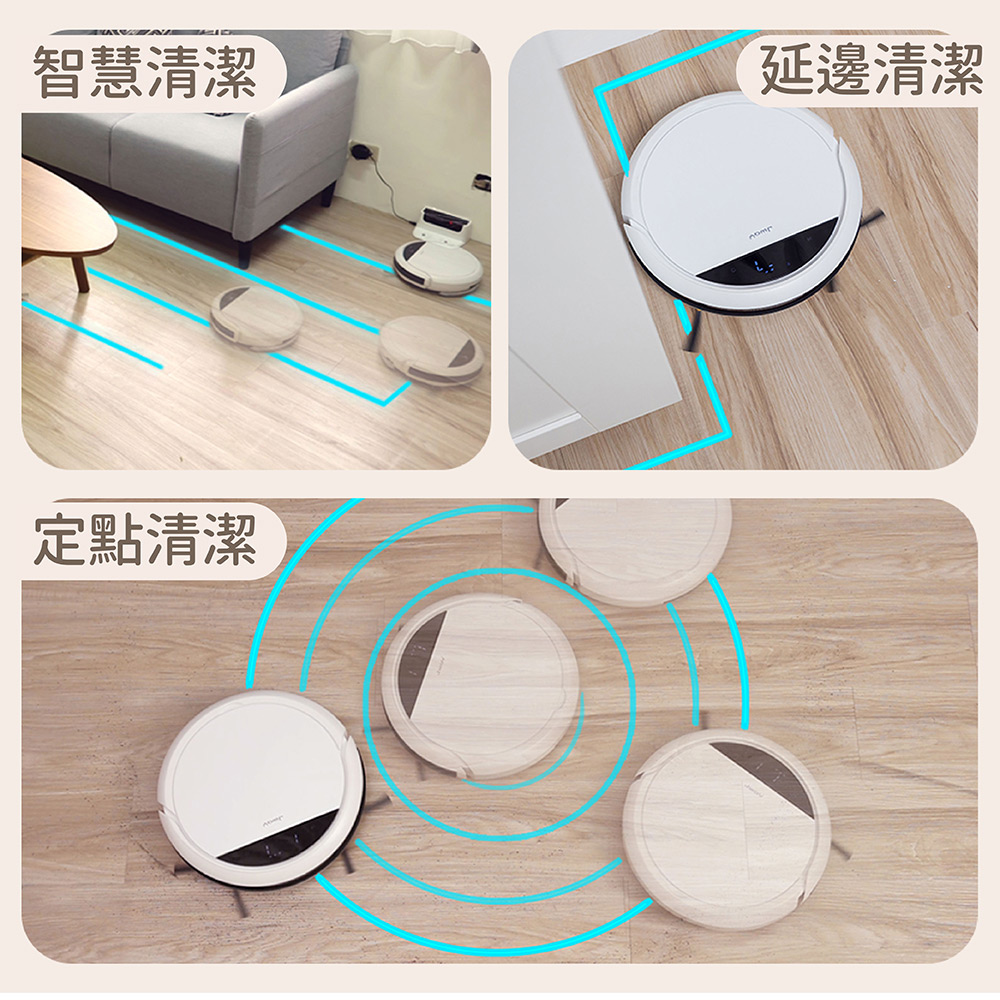 五種清掃模式 ( 智慧清掃、沿邊清掃、定點清掃、局部弓字、方向模式 )
