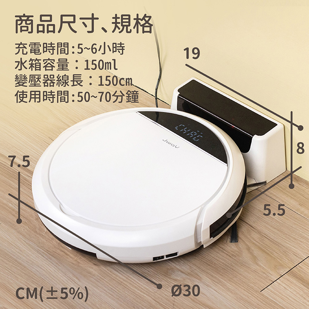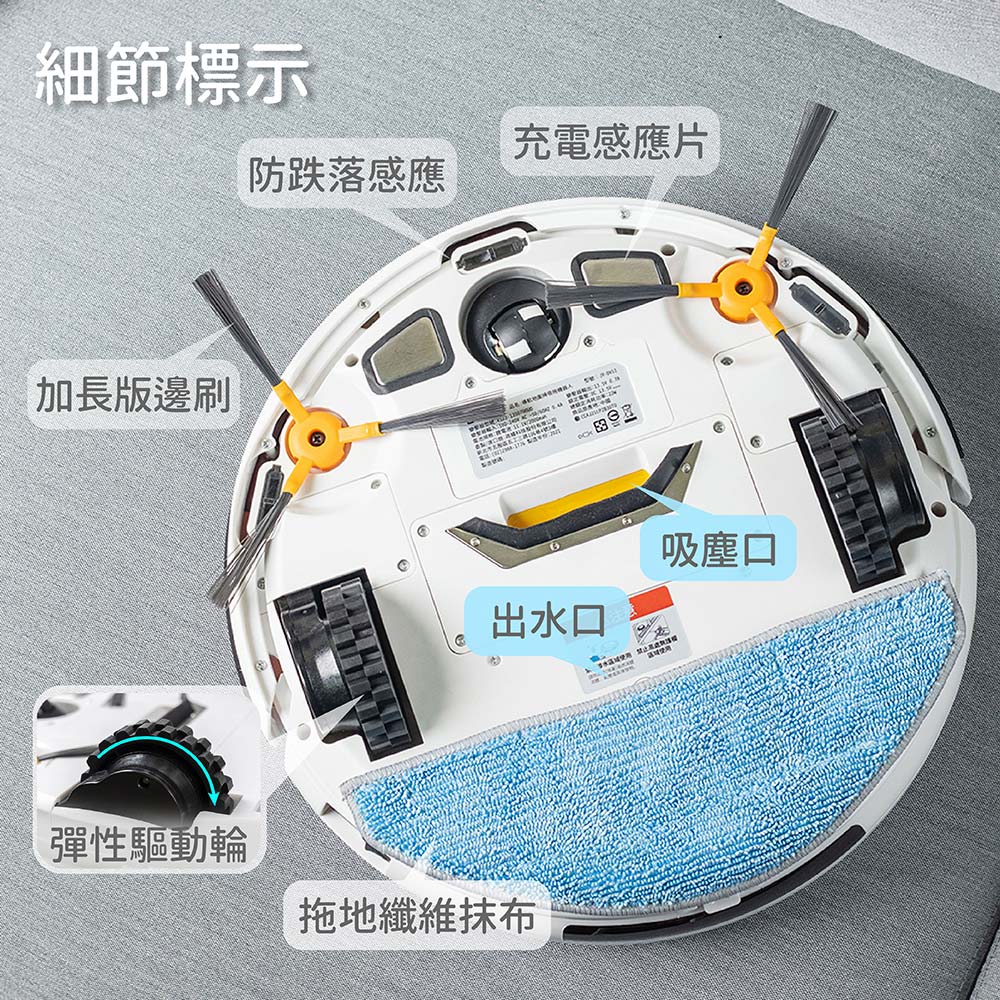 配件 - 主機 ( 内含邊刷1組 / HEPA濾網x1 / 拖地布x1 ) 充電座x1