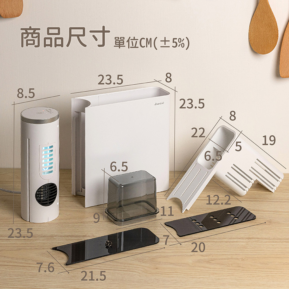配件 -可分離式烘乾消毒主機X1、刀具筷架烘乾座X1、