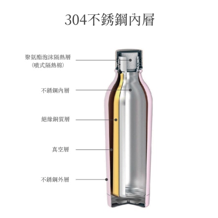• 三層銅絕緣體,瓶身不留水珠也不燙手