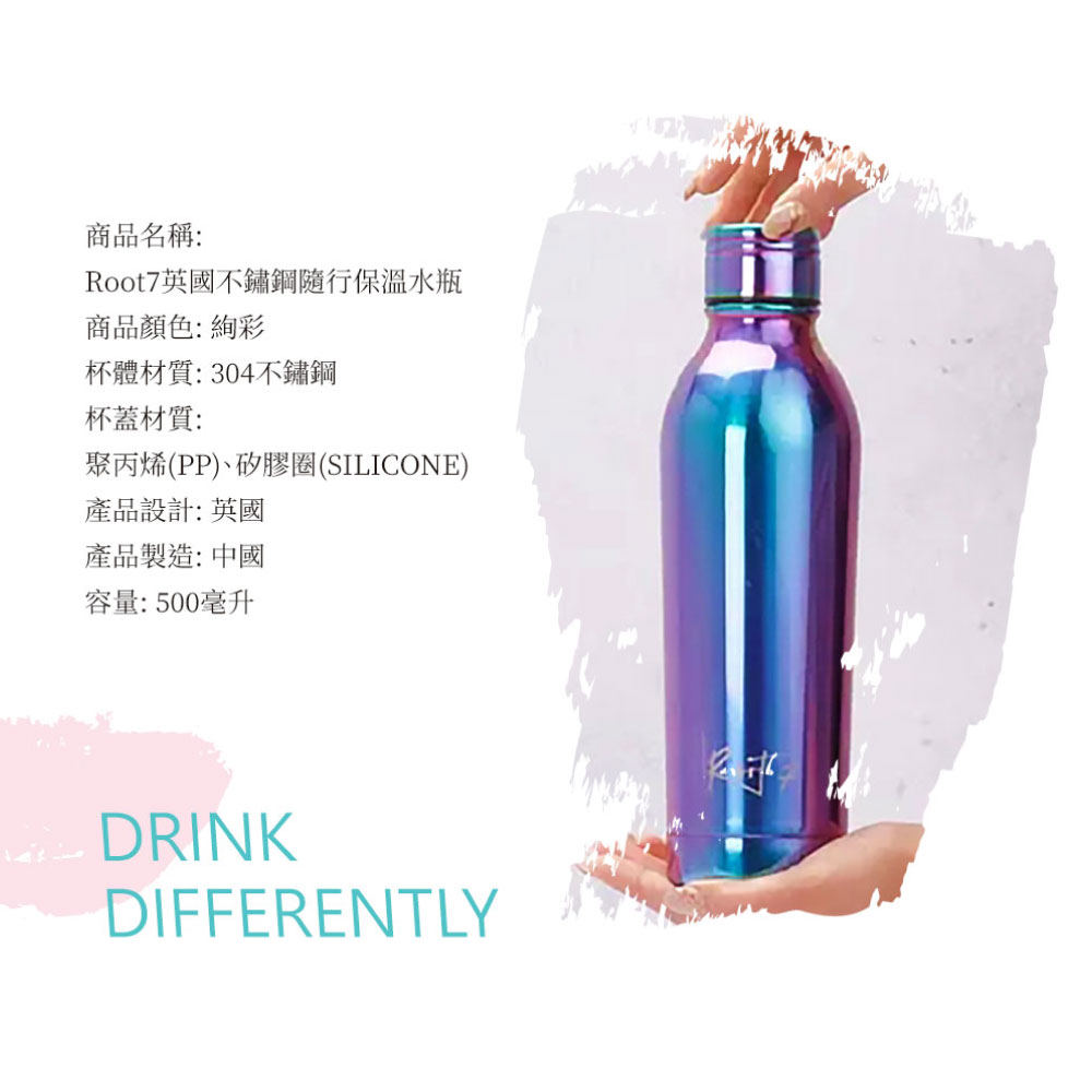 英國 Root7不鏽鋼隨行保溫水瓶 ,希望每一個人都可以喜愛、安心喝水,且減少塑料的使用,