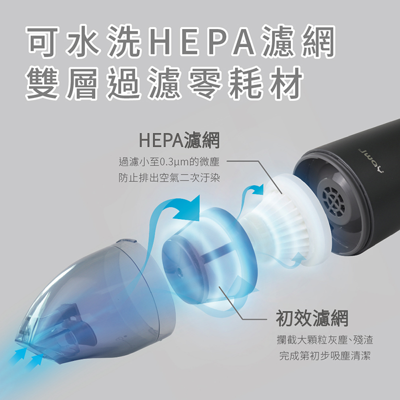 可水洗 HEPA 過濾網,過濾小至 0.3um 微塵及過敏源