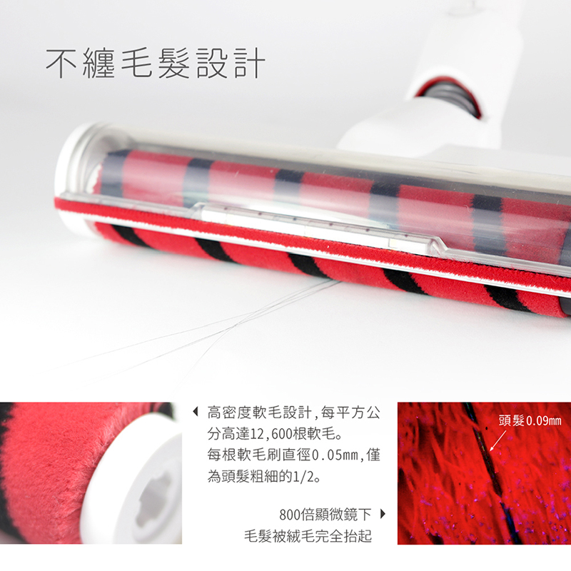 高密度纖維地刷設計,防止毛髮纏繞,同步清潔拋光地板