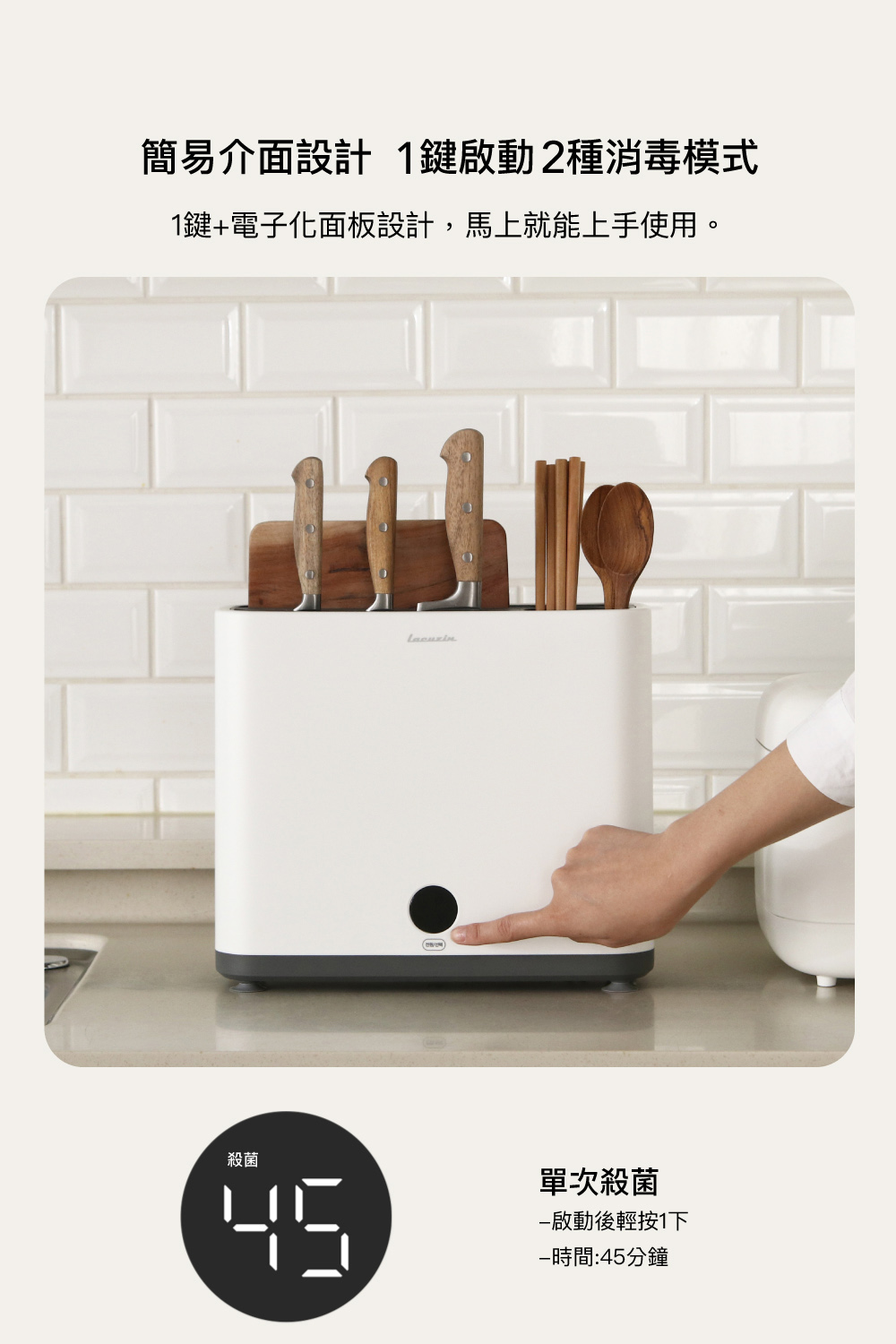 簡易介面設計 1鍵啟動2種消毒模式