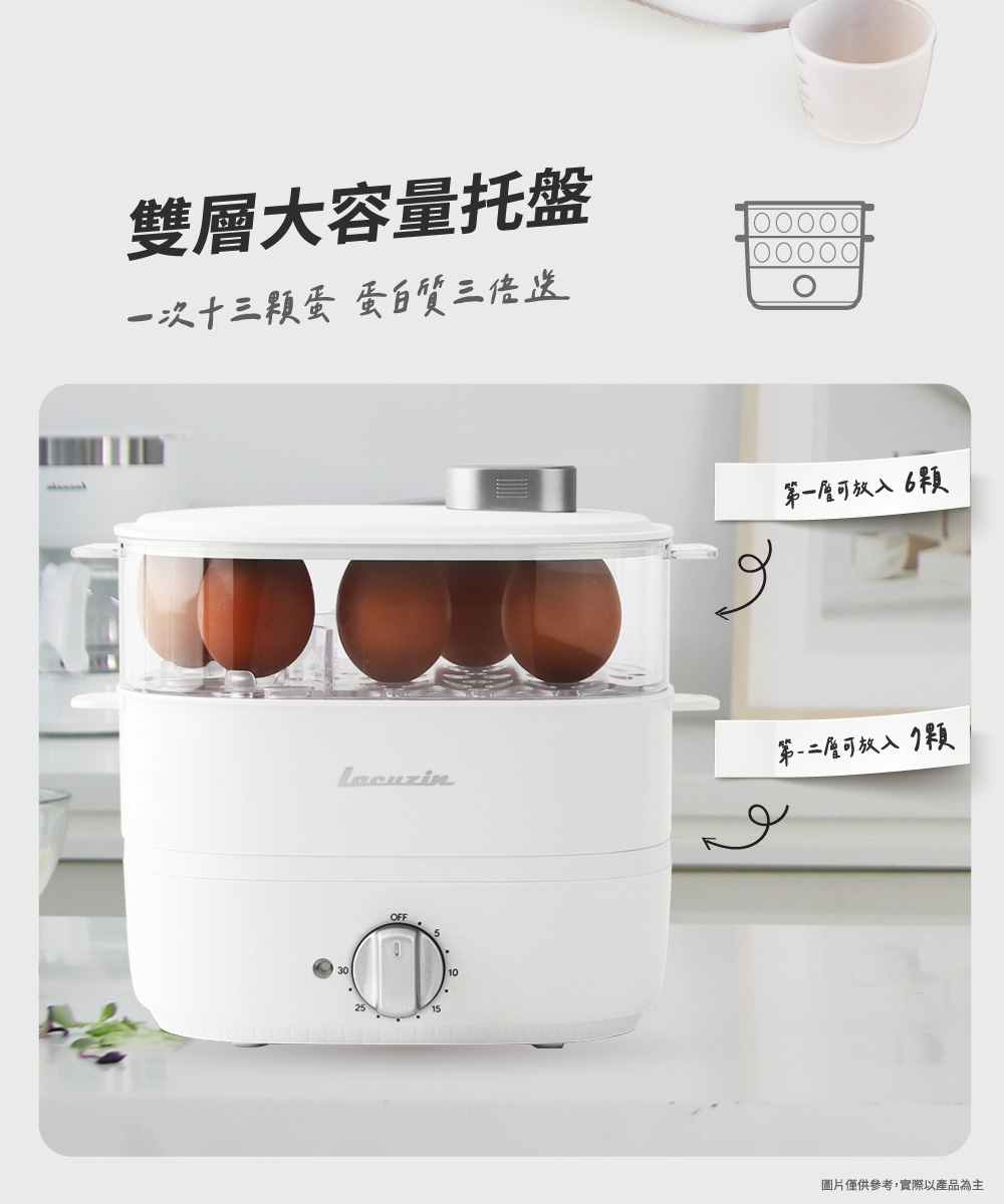 雙層大容量托盤,一次十三顆蛋 蛋白質三倍送