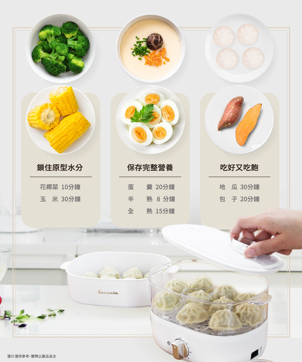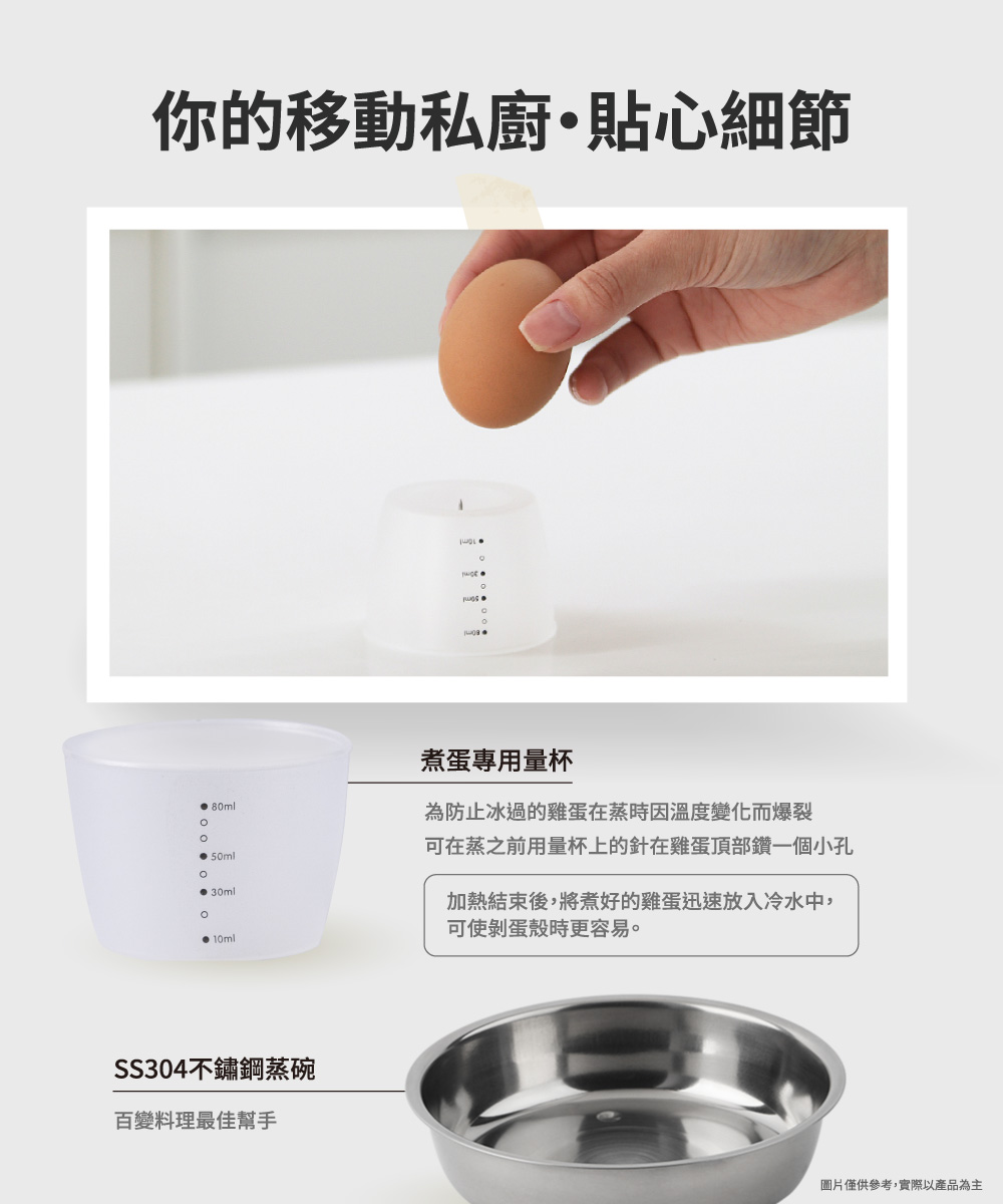包裝內容:主機、面蓋、上蒸籠、下蒸籠、不鏽鋼碗、量杯、量杯頂端針