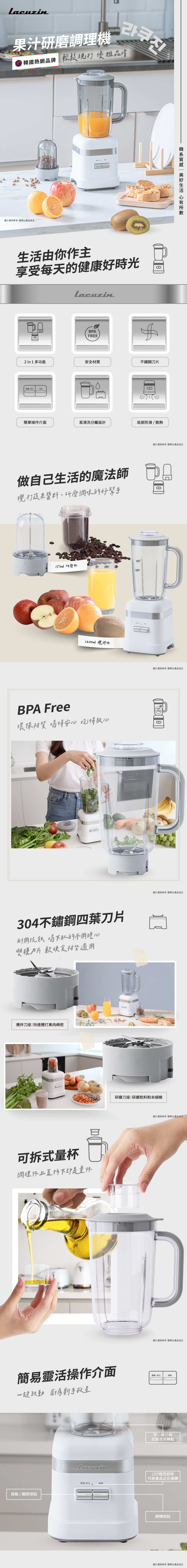 304不鏽鋼四葉刀片耐用抗蝕 喝下肚的不用擔心 雙種刀片 軟硬食材皆適用