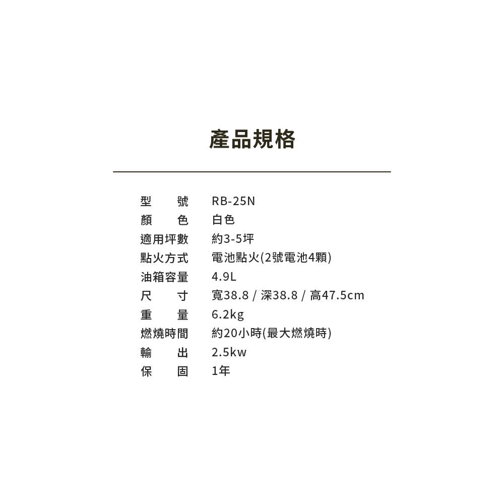 燃燒持續時間 : ( 最大燃燒時 ) 約20小時