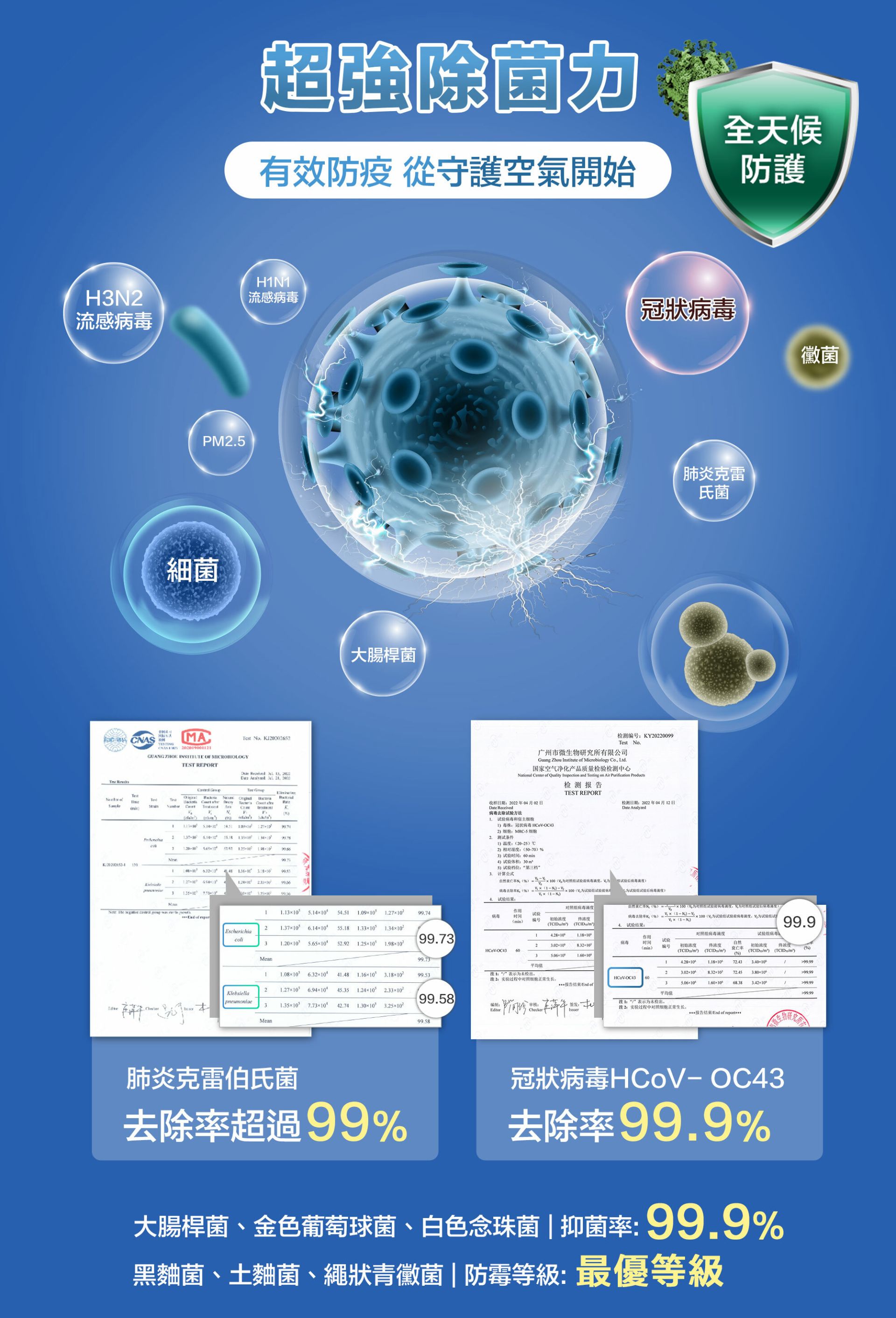 🔵 金黃葡萄球菌去除率99.9%