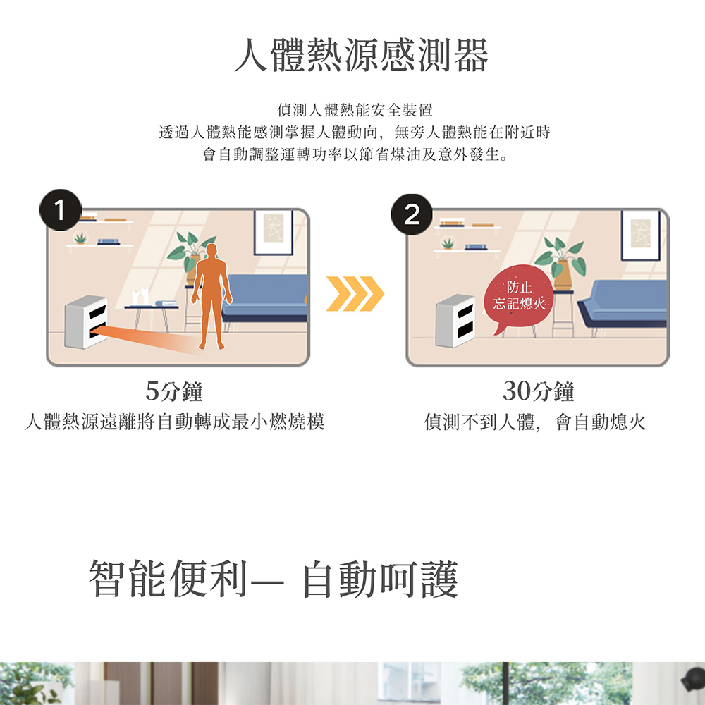 ※節能感應裝置 (一小時無偵測到人體存在,自動熄火)