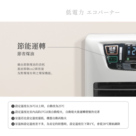 燃燒消耗量 : 最大燃燒時0.413 L/hr、最小燃燒時0.099 L/hr